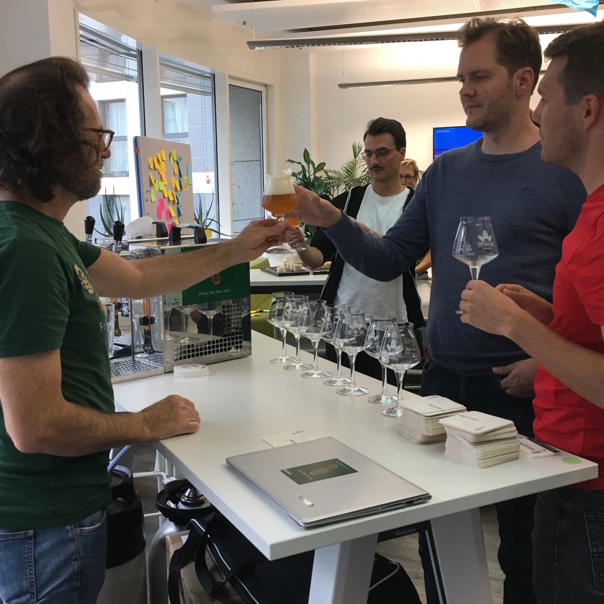 During the Craft Beer Tasting event, we take you on a flavor journey sampling up to 6 of our handcrafted ales, exploring diverse styles from pale ales and IPAs to a seasonal ale or barrel aged. We talk about ingredients, small batch production and our inspiration to start a craft brewery in Munich's brewing district.